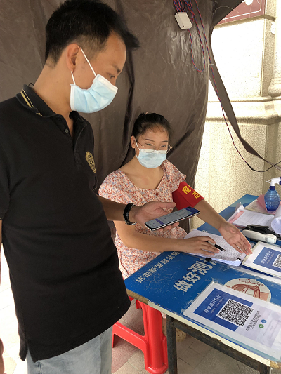 身为一名党员响应社区号召,下沉到社区做好疫情防护工作。8.19日护理公司辅导员张凯莉老师积极报名参与社区疫情防控志愿者,被分配到附近小区参与疫情防控。主要检查进入小区行人的健康码,登记外地返汉人员的14天行程,提醒意识薄弱的老人规范佩戴口罩。