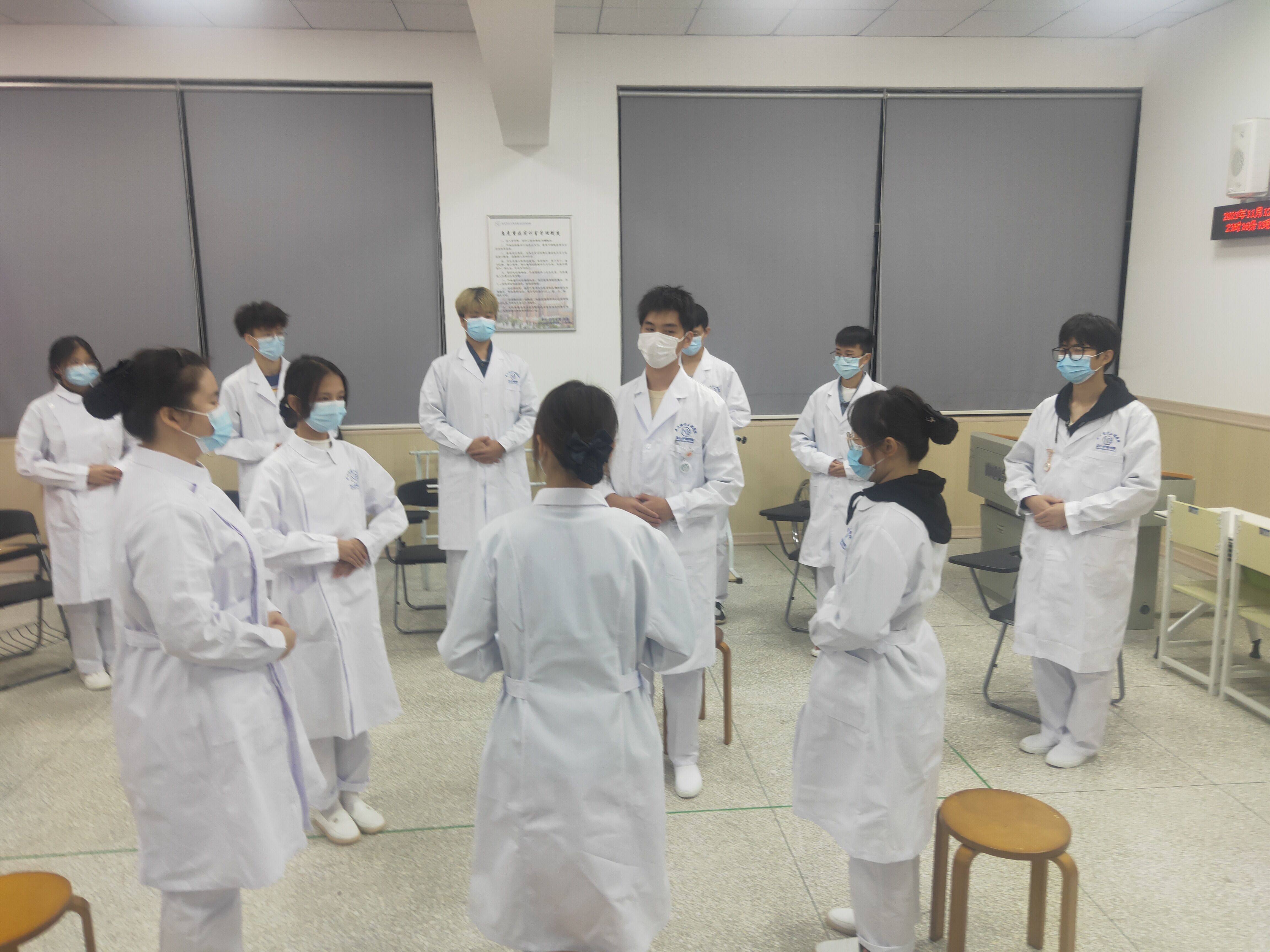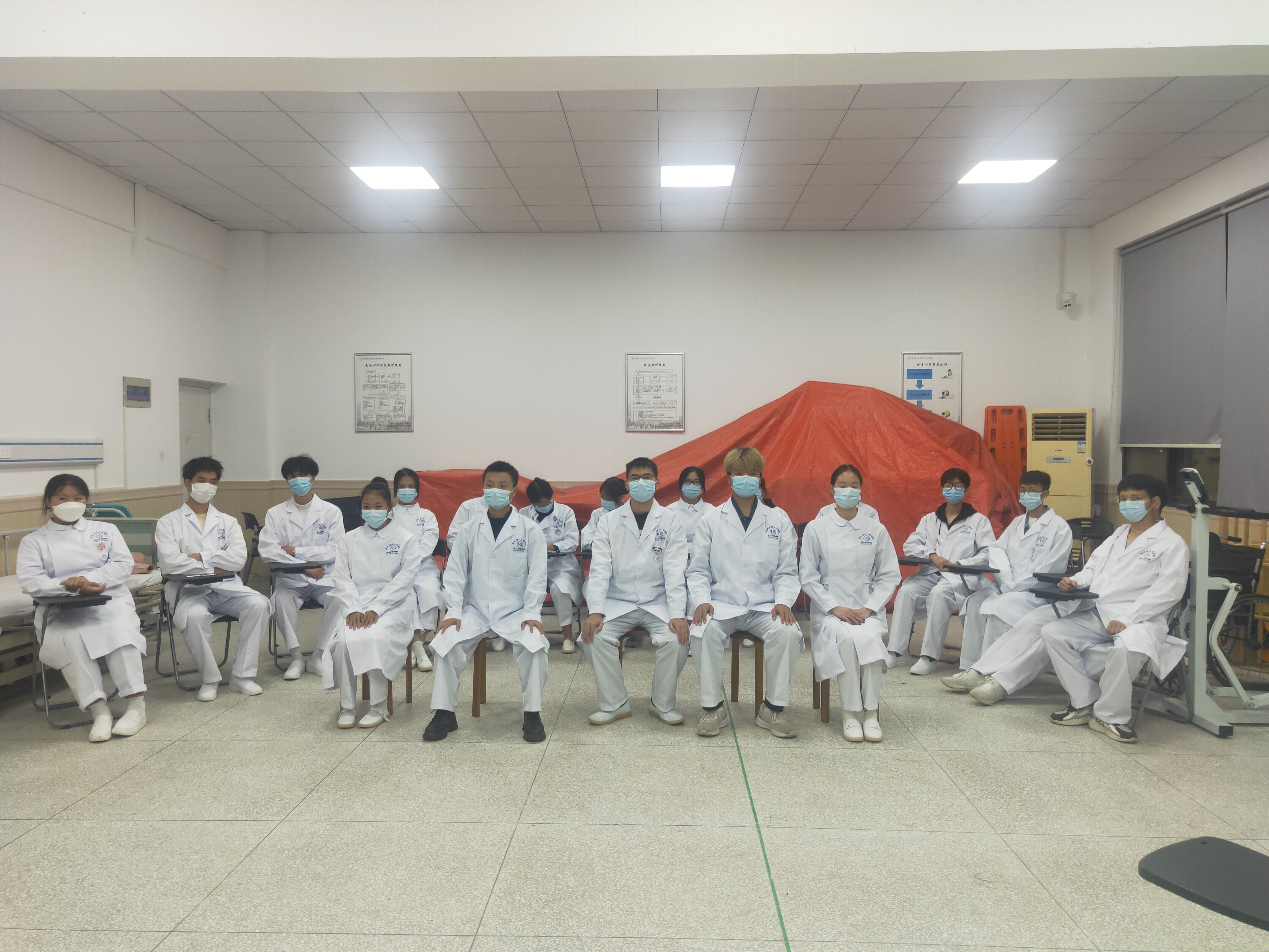 为了丰富课外活动,让同学们更加了解康复专业,同学们于6:40在临湖轩b4039举行了轮椅健身操的考试。