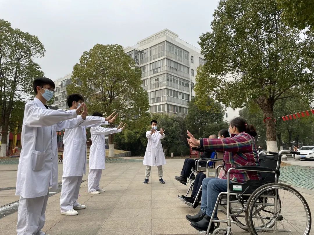 2021年12月11日早,由谈球吧康复系主任方丽媛与员工工作室辅导员陶高的带领下在谈球吧康复治疗技术班组成一支康复志愿服务队着便装来到阳光一百社区,向各年龄段的人推展“易筋经”进行日常活动,希望能帮助他们得到有效锻炼,促进心理和身体健康。